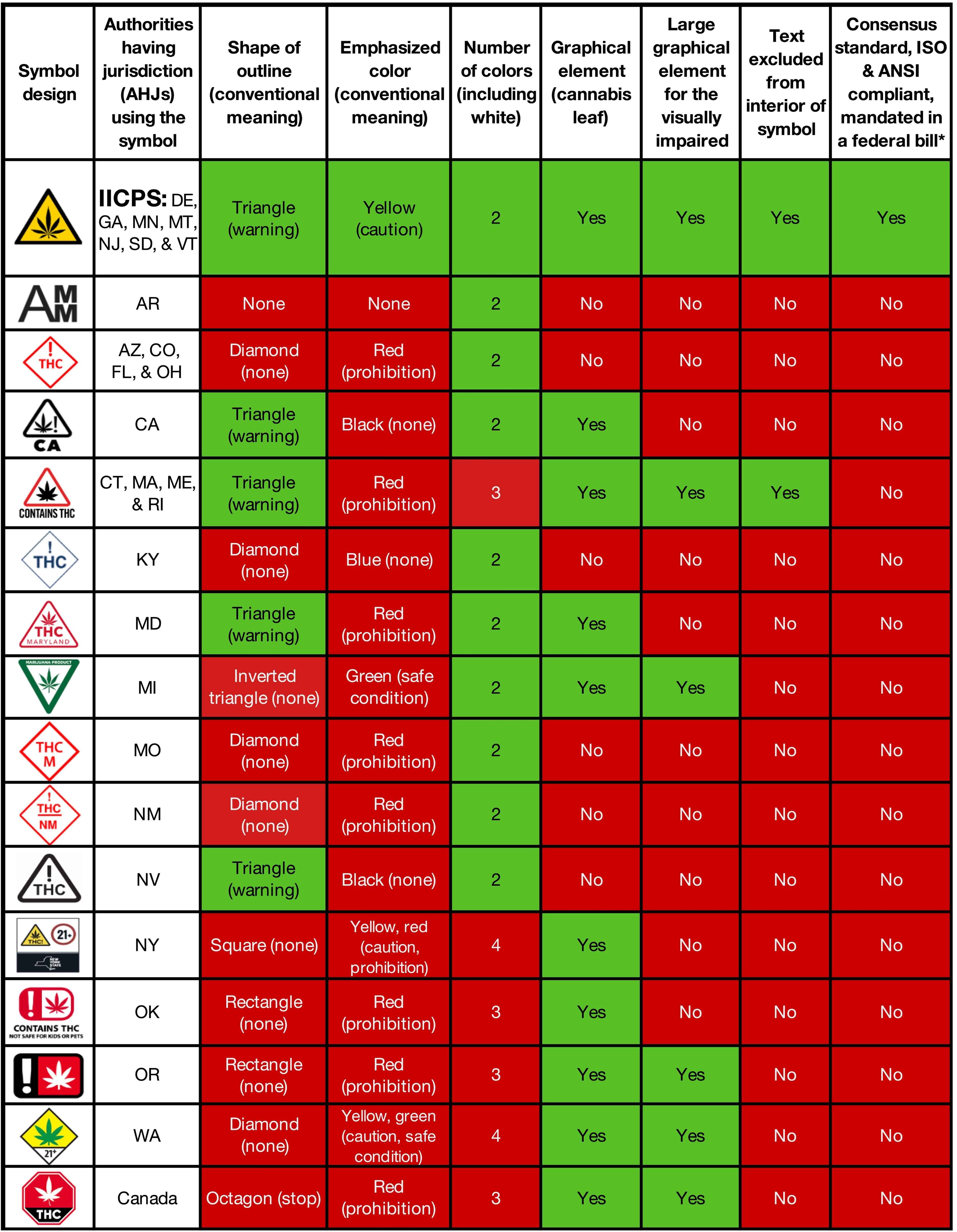 As individual U.S. states and the federal government approach full legalization of cannabis for adults, a universal symbol for cannabis products is essential to ensure the protection of public health and safety. In the absence of federal standardization, states have adopted widely differing regulations for cannabis product labeling and packaging.